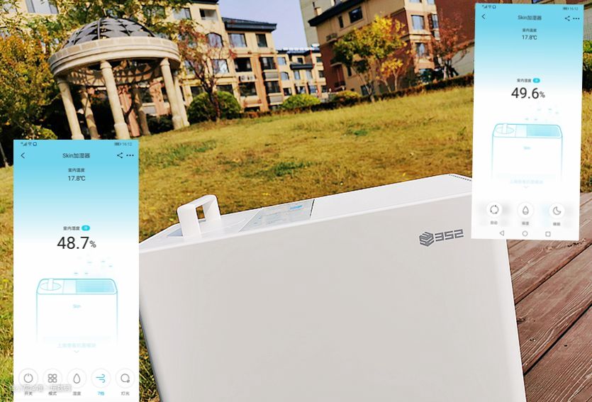 实际测试结果对比如下:差异十分明显,传统超声波加湿器散发的不过是大颗粒水团,常常会搞得原本干燥的卧室里水雾漫天而且地面有水,而352加湿器是纯物理蒸发方式,本质是气体,蒸发后分布更均匀,有效地解决了用户的烦恼。