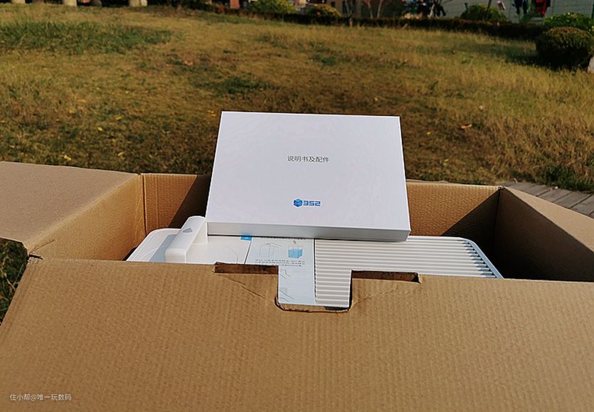 常规开箱:352 Skin自然蒸发加湿器采用了牛皮纸色硬质纸箱包装,箱体上只有产品名称以及简单的介绍。同时包装使用了两条加固带固定,使得其在运输过程中更加安全免受损坏。