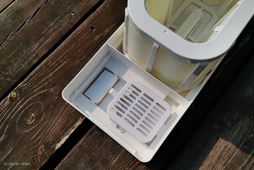 蒸发滤网采用了可拆卸设计,可通过抠开加湿器底部面板抽拉出滤网,同时由三种高分子纤维聚合而成,能够有效的过滤掉各种微小颗粒。建议大家一周清洁一次,冲洗水槽和滤网,再用刷子清理栅格灰尘,操作简单。