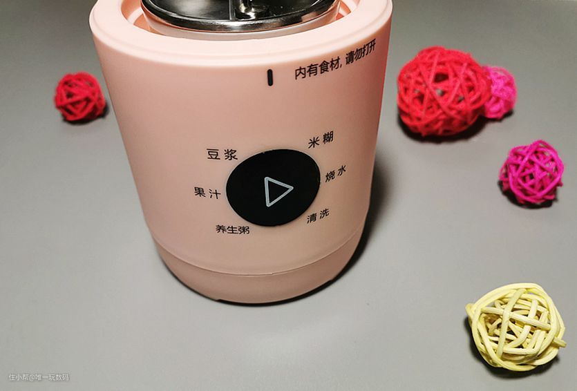臻米Mini破壁机提供了六大功能操作,分别是养生粥、果汁、豆浆、米糊、烧水和清洗,和传统的破壁料理机区别不大,这些功能也基本涵盖了日常制作料理的方式。