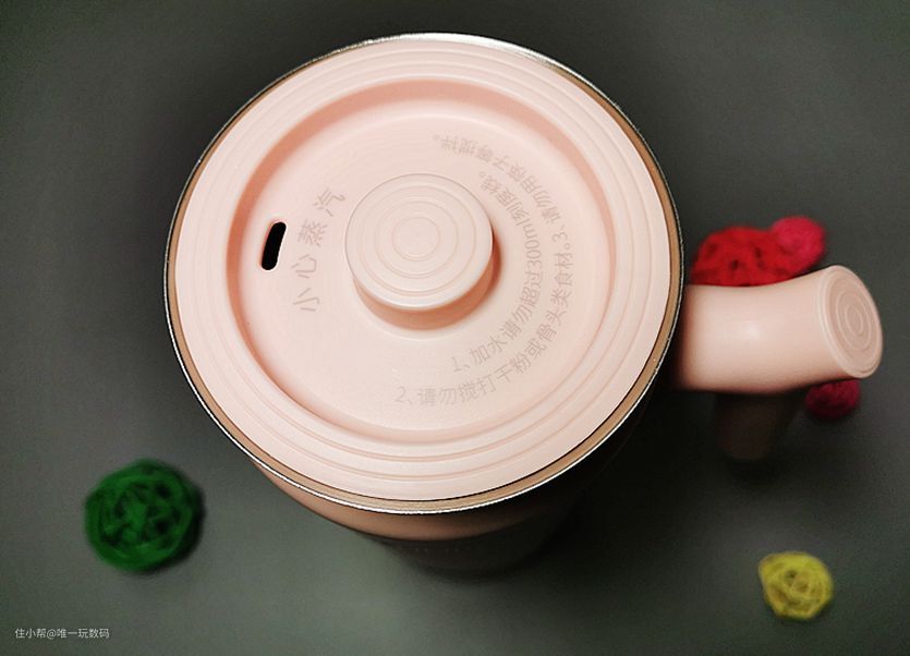 臻米Mini破壁机杯口采用弧形设计,可有效防止液体流出,弄脏杯身和桌子。同时盖子设计有一个排气孔,用来排净使用过程中产生的热气。