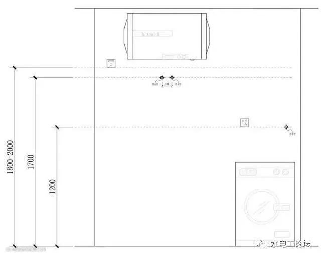 2、电热水器插座可安在1800-2000㎜处,建议用16A带开关三孔插座,并加装防溅盒。