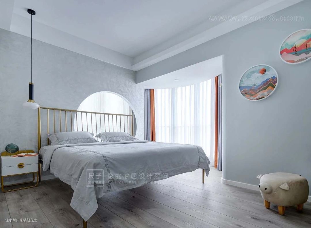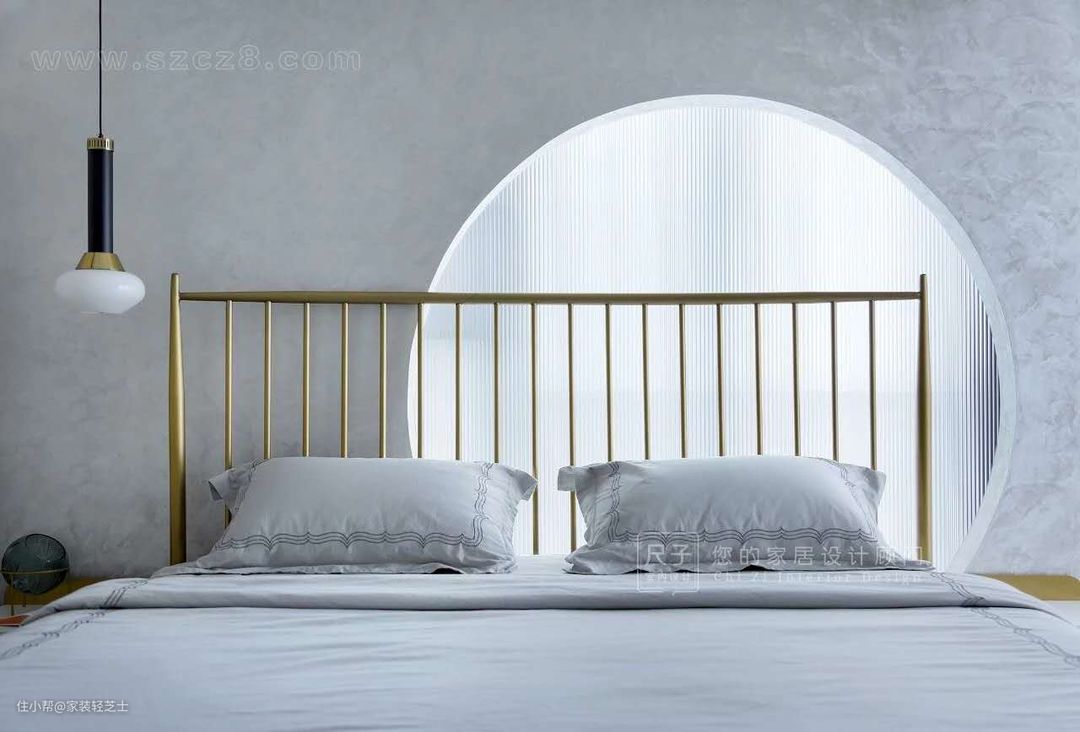 业主家的卧室有个L形落地窗,因为利用率不高,于是就在L形落地窗的基础上打造了一个室内窗。