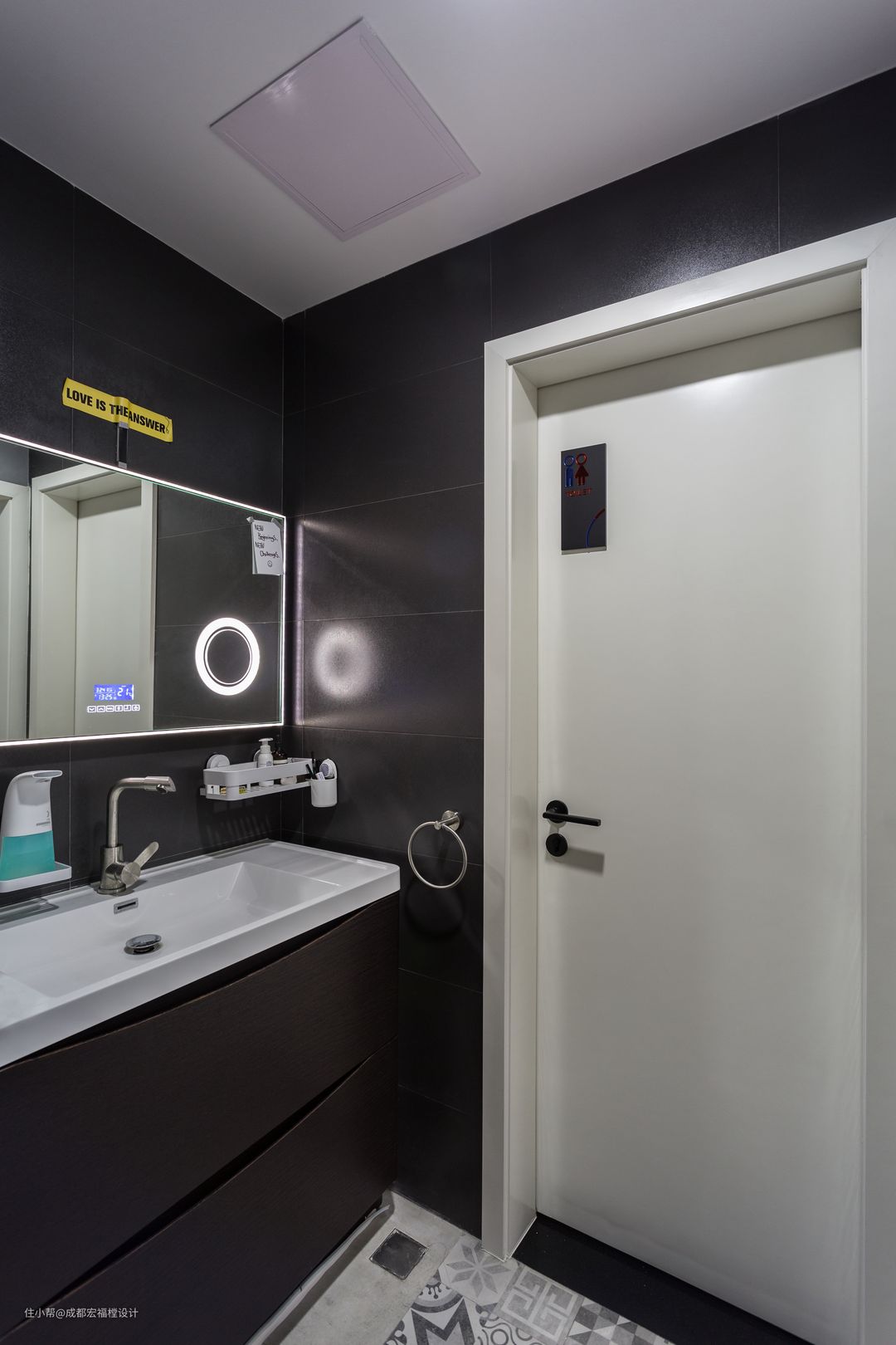 ▲吊轨磨砂玻璃推拉门,占用空间面积较小,推拉方便也不用担心底部清理问题。《SADNESS》