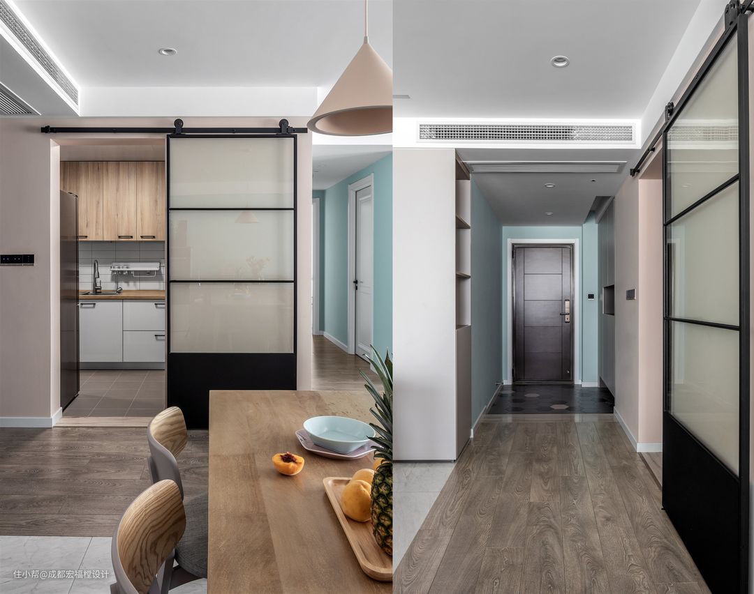 厨房、餐厅、客厅等公共区域的推拉门选择,一般会兼顾区域划分和保持通透性两大功能。