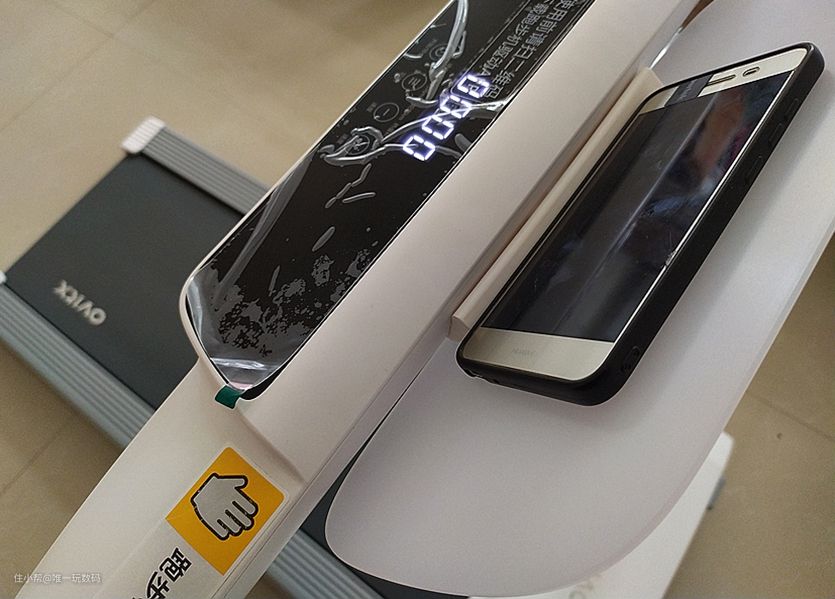 面板的正后方有一处凹槽,这是方便用户放置手机或者平板电脑的区域,在它的下方有一处USB接口,方便用户通过该接口为手机或平板电脑进行充电。