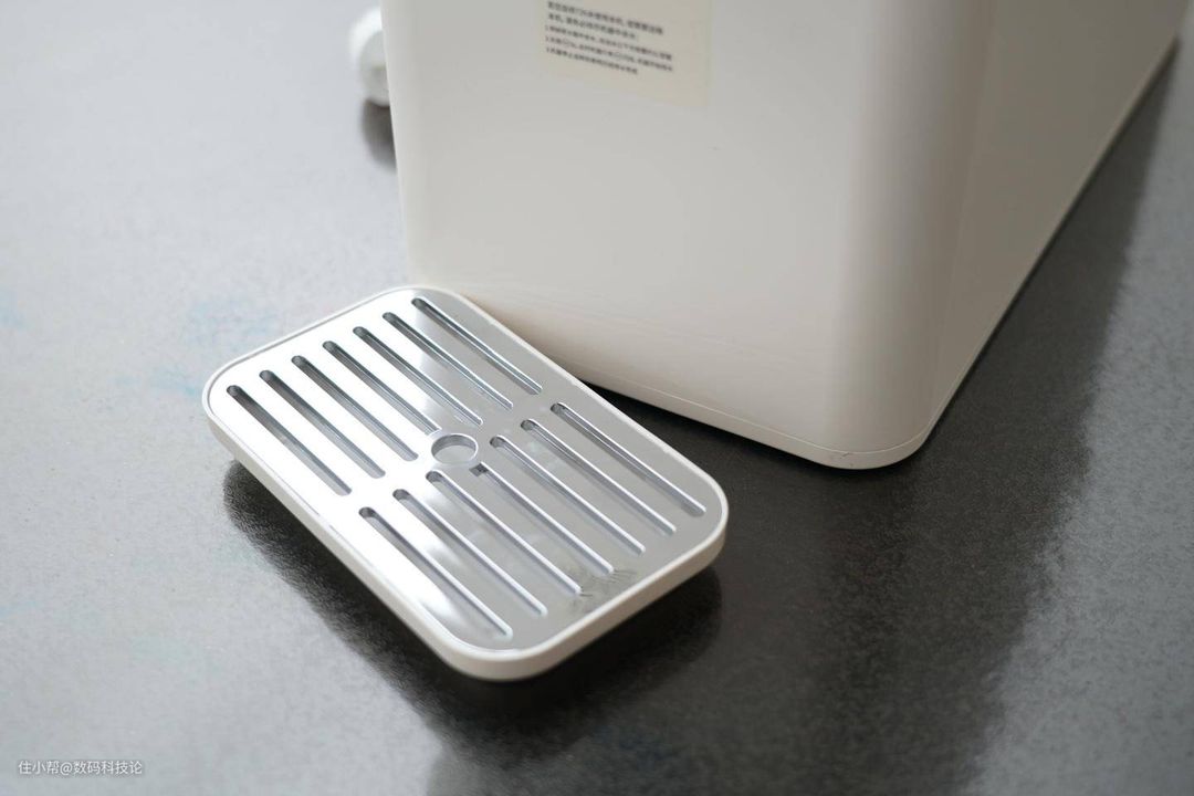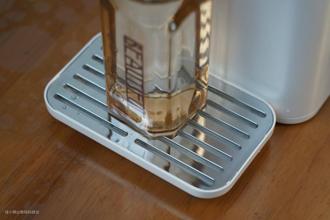接水盘尺寸15cm*9cm*2cm,上层是栅格的电镀金色色。与主机连接为磁吸式设计,安装和取下都简单。