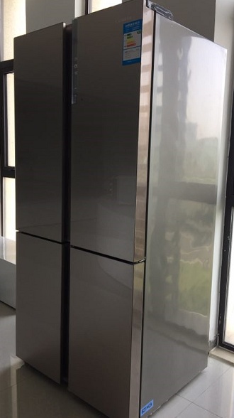 这款卡萨帝BCD-621颜色高大上,面板是香槟金色玻璃质感、水润通透,箱体是带点灰岩色、雕刻纹理、金属质感,不管往哪一放都是高档机。