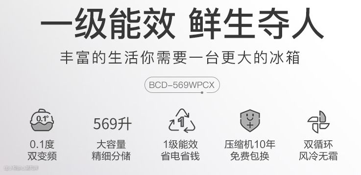 BCD549,这款深度648mm同样适合厨房600的家庭,549L的大容积基本能满足家庭需要。特色是37L的变温区划分了珍品区、零度区、果蔬区,另外这款的冷冻能力15Kg/24h,基本拉满。1级能效,耗电量0.93kWh/24h。