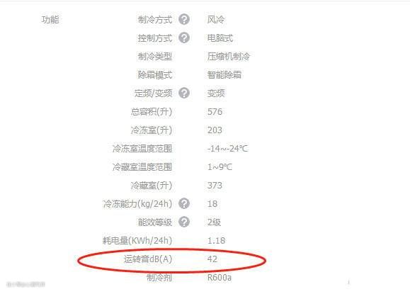 作为一款大容量,噪音没有标注42dB而是压到了38dB,是很棒的特质了。最大的缺点是这款不带零度保鲜。