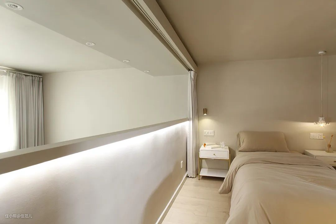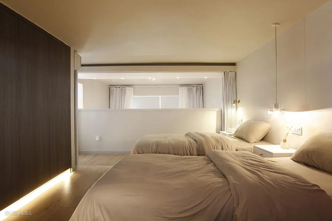 Loft二楼通常是卧室区,半堵墙的高度不高不矮,提供隐私性和安全性,同时与客厅采光互借。