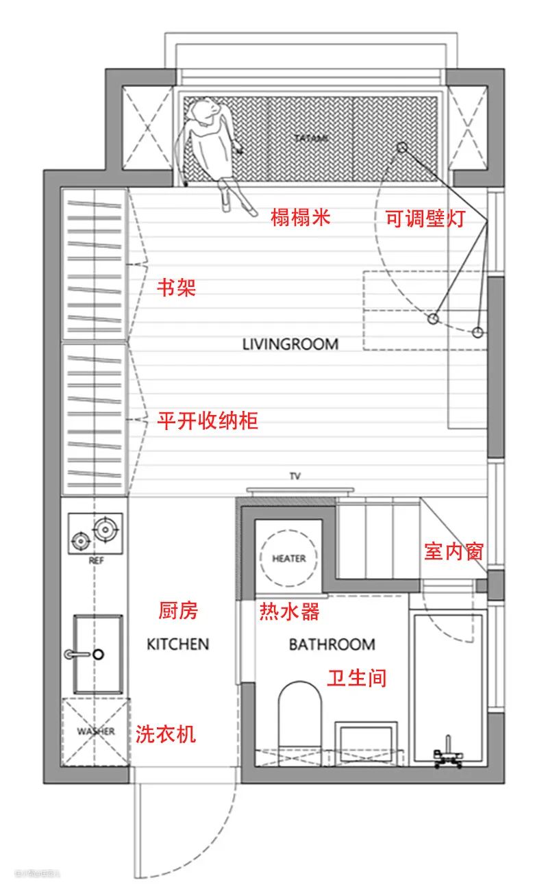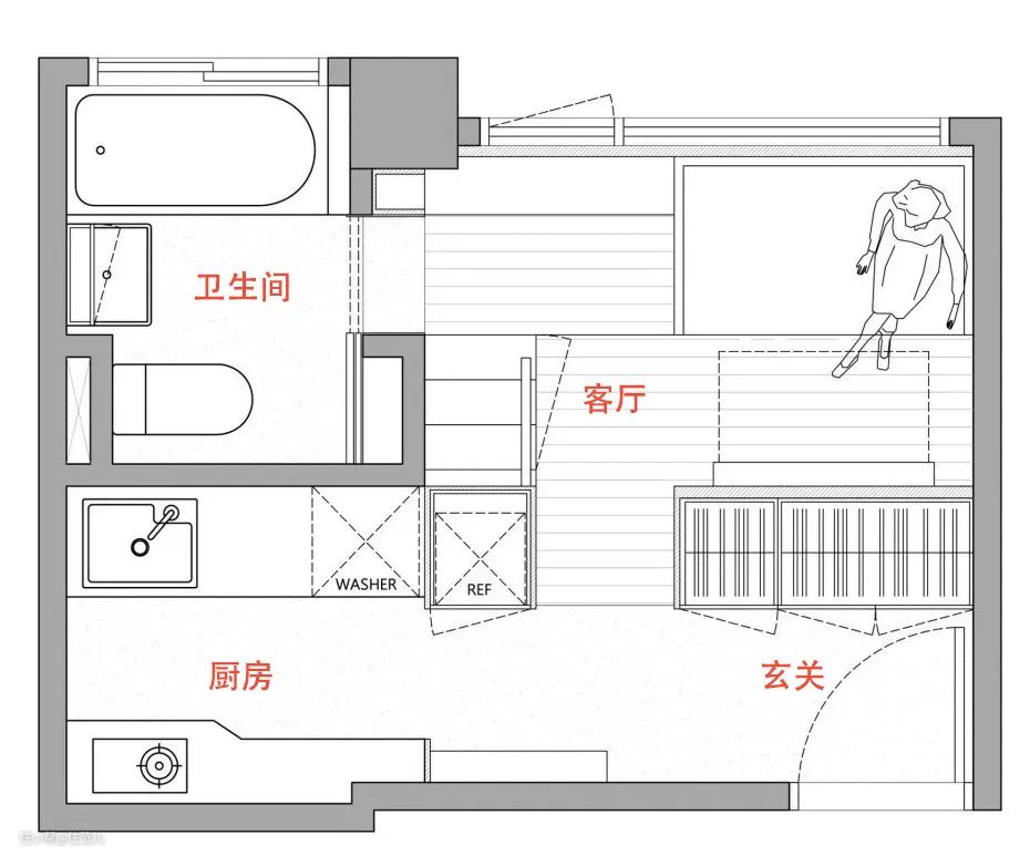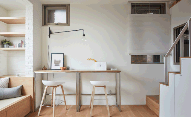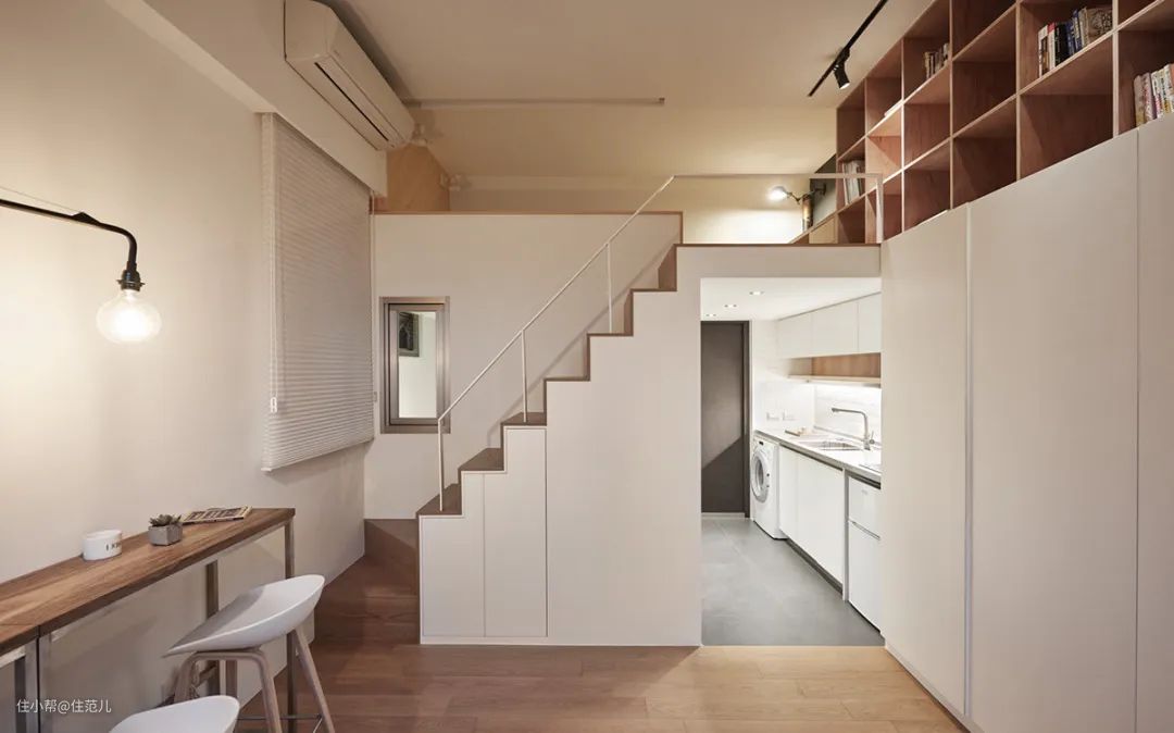 第一个是台湾一间房龄超10年的老房翻新案例,公共层高3.4米面积仅17.6㎡的迷你Loft公寓。