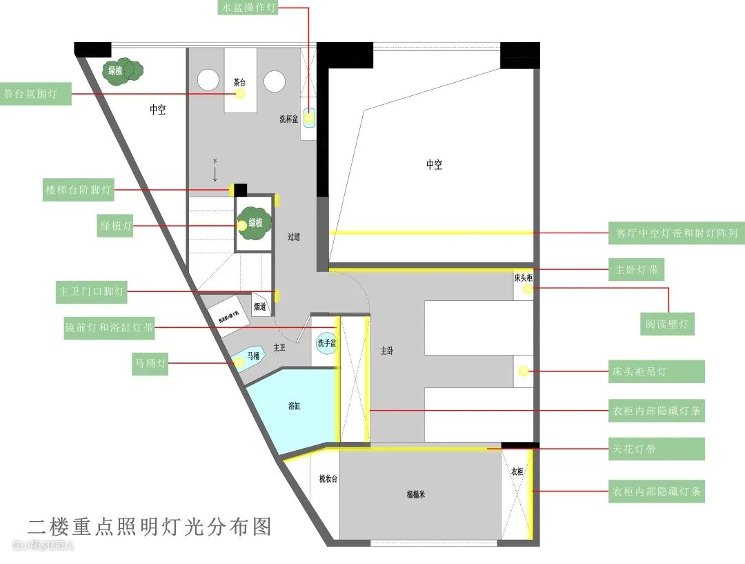 值得注意的是,复式空间一定要先确定好整个房子的隔层设计方案,再做水电。