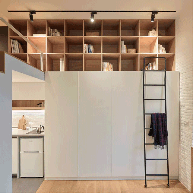 第二个案例是一个层高3.3米面积仅22m²,真的不能再矮了的小户型loft,全屋收纳是真的绝!