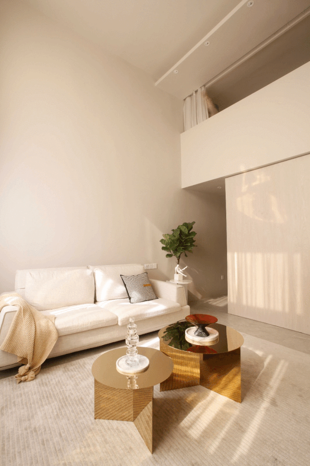 与层高不足4米的小户型loft不同是,这是一间层高4.4米建面49.5m²的奇葩户型loft。