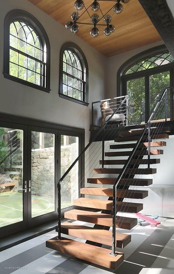 直梯是比较常见的一种设计方式,也是最传统的方式,呈直线型向上延伸,简单大方,适合有老人小孩的家庭。