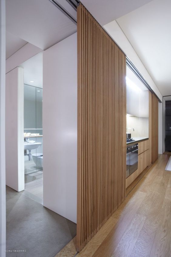 小户型打成大通间,顶天立地的柜门装个滑轨,客厅卧室一分为二
