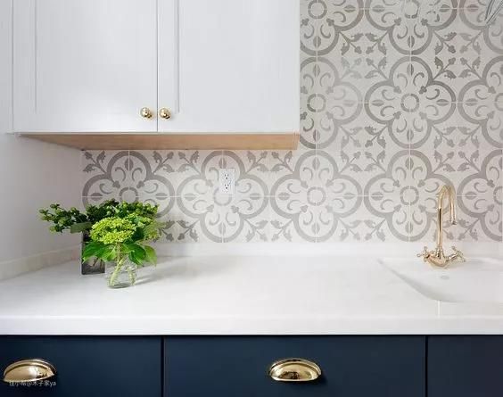 喜欢鲜艳一点的颜色,可以在厨房适当加入花砖装饰,起到画龙点睛的作用。花砖可以用在墙面也可以是地面,铺设起来都非常好看。