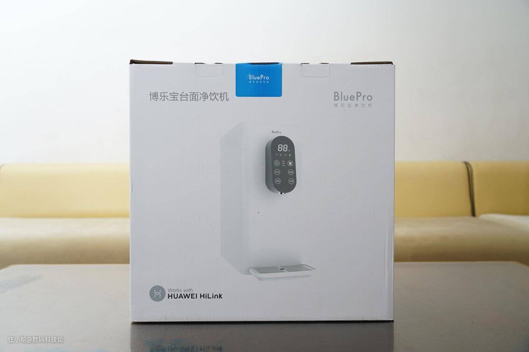 BluePro 博乐宝B16即热净饮机由于集成了储水、过滤、加热、智能控制等功能,并搭载了5L大容量水箱,所以整机至有分量,含包装重量达11KG。好在包装给力、双层纸箱、加强泡沫支撑,在长途跋涉的运算中也没有发生可能等情况。