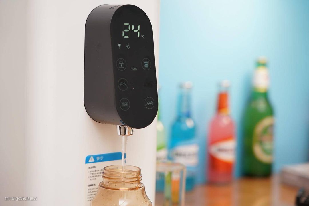 而从模式来说,这款热水器共分为四大模式:常温、冲奶(40~60℃可设置)、沏茶(65~85℃可设置)、开水(90~99℃可设置)。但由于是即热型,所以实际上并在冲奶、沏茶等模式下出来的水并不是温度较低低的凉白开。从出水速度来看,在常温状态下略快,实测出水150mL耗时10秒;开水略慢出水150mL耗时14秒,但考虑到这个过程是直接把自来水变直饮开水的,故也在接受的范围内。