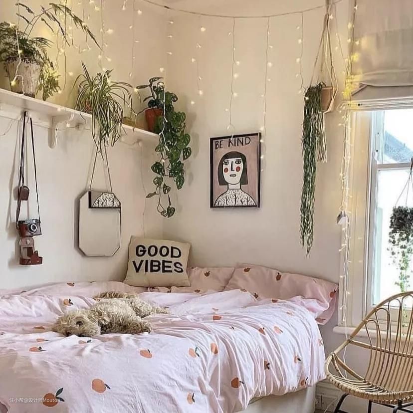 ②房间小挂饰:想打造一间属于自己的ins风房间,怎能少了墙面的装饰呢?一串小彩灯、一个捕梦网、一幅自己喜欢的插画,还原INS风最简单的样子~