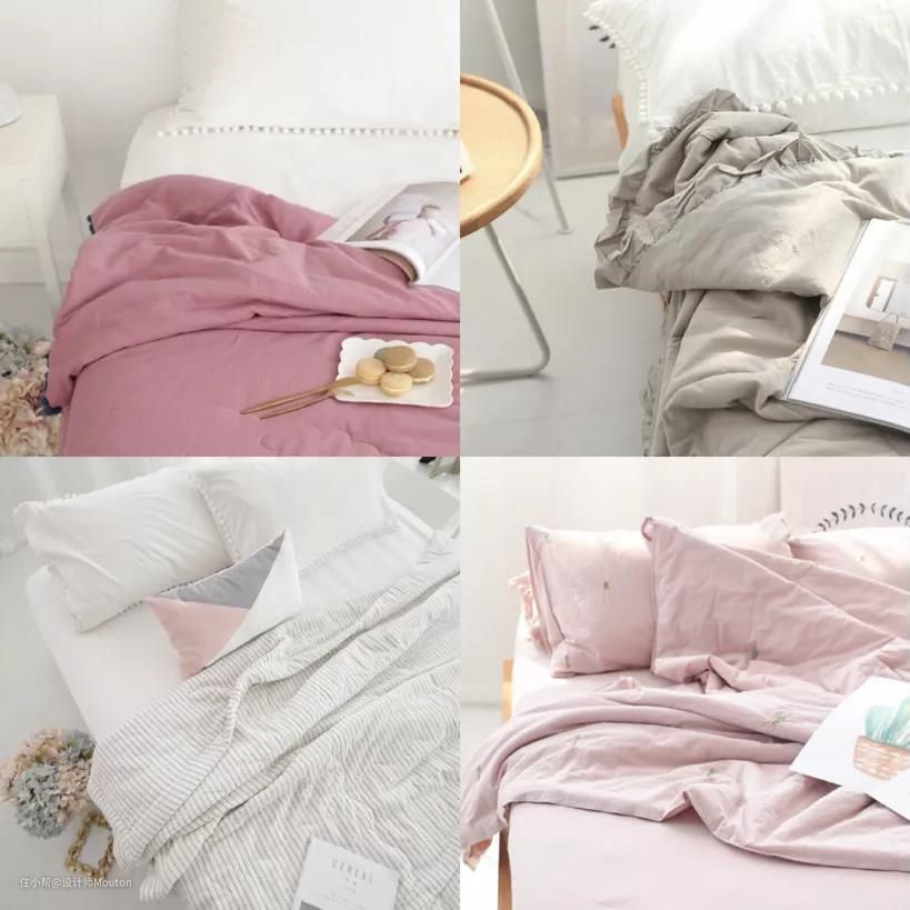 ①四件套:卧室里最能提升幸福感的那肯定是床,再把床上四件套换成自己最爱的ins风,就让好梦从盖上被子开始~