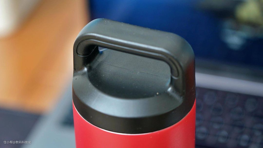 下面是杯盖的特写,有点骑行水壶的感觉,应该能放在山地自行车的梁上携带。