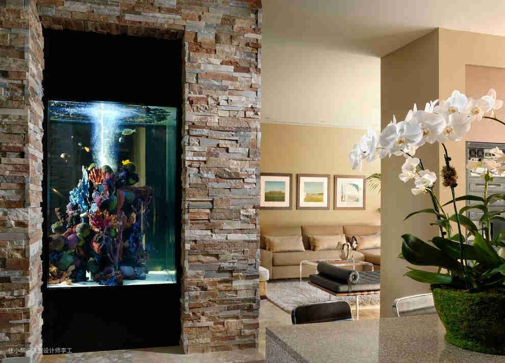 需要前期在装修卫生间的时候跟师傅商量好,提前预留好鱼缸的大小,鱼缸的厚度最好跟墙壁一样,这样才不会凸出来。另外在鱼缸的上方和下方安装带手柄的可移动金属抽屉,里面主要是安装一些过滤器和真空泵,除了日常喂养,后期还可以进行定期检查和维护。