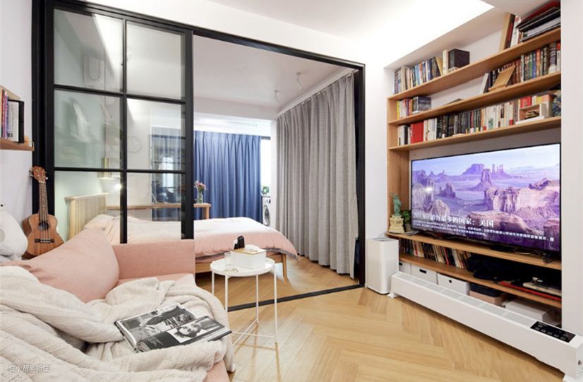 仅40平的小户型,想多一个房间做书房是不可能的,爱看书的Natalieee从装修一开始,就确定了要利用客厅的墙面做书架墙。这样免去了经常跑图书馆的辛苦,也没有过多占用家里的空间。