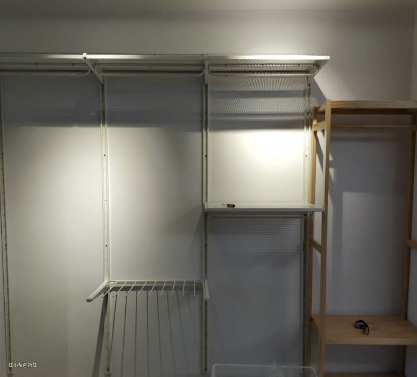 小户型很难放大衣柜,所以宜家艾格特+帘子成为一个人的衣帽间,2.5米宽全部用来挂衣服,一个人住完全足够,连换季都不用整理了。