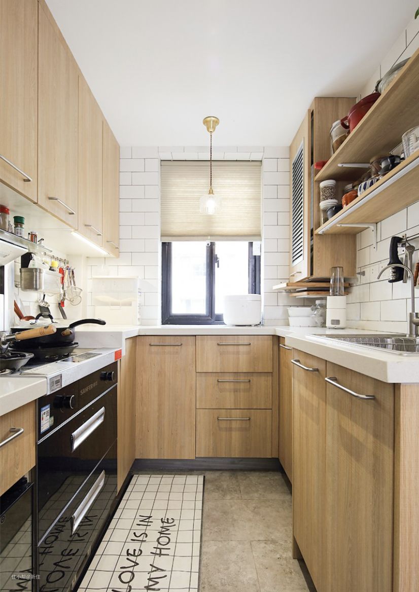 U型半开放式的厨房,是这个小房子里最有烟火气息的角落,即便是一个人住,仍然保持对健康饮食的追求和热情,毕竟谁能拒绝自己亲手做出来的各种美味呢!