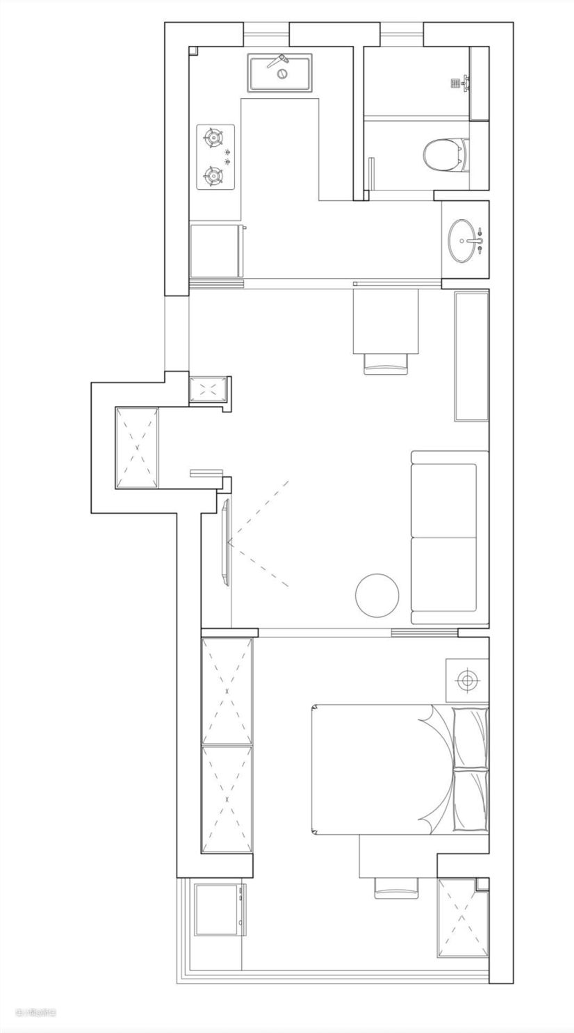 不过话说回来,因为空间确实很小,所以如何充分利用成为了最费心力的事情,Natalieee最后决定把刚开始想放在窗户处的水槽放在右手边,这样动线更流畅,窗户下面的橱柜以及转角空间都不会被浪费。