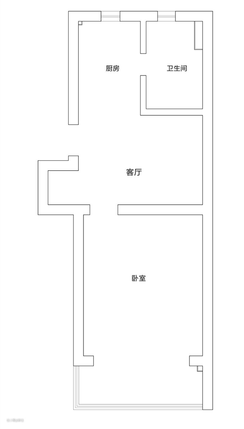 乍一看原始户型,卫生间的门在厨房,非常奇怪,客厅和卧室之间的墙面完全遮住了整屋的光线,造成整个客厅全暗暗的,很压抑。