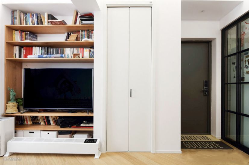 书架旁边的位置,是客厅没有改造前的电视墙,而且恰好是一个凹进去的空间,Natalieee就把她变成了自己的储物柜。