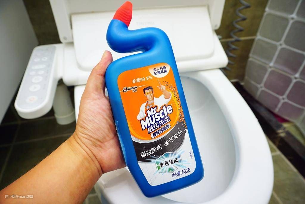 目前,楼主在用的一款威猛先生洁厕液,挺好用,符合上面说的两点,鸭嘴设计、挂壁时间很长,能对水线附近的那圈水垢进行分解清洁,还有去污变色的功能。