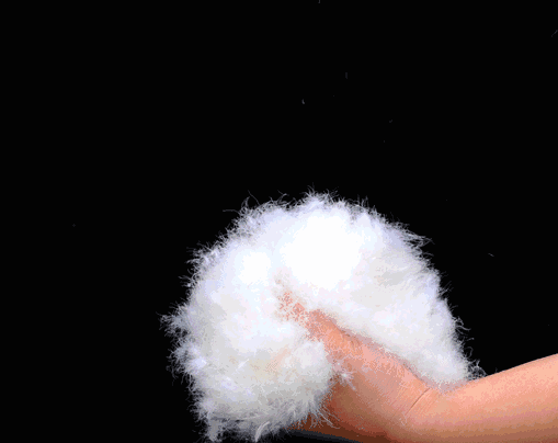 可以看到含绒量和绒子含量的区别在于是否计算绒丝成分,绒丝指的是从绒子或毛片根部脱落下来的单根丝。所以部分不法商贩可能会钻其中的空子,在填充物中加入大量绒丝,虽然表面看上去含绒量很高,但是细小的绒丝与大颗的绒朵相比,保暖性能会差很多,同时也很容易钻绒。