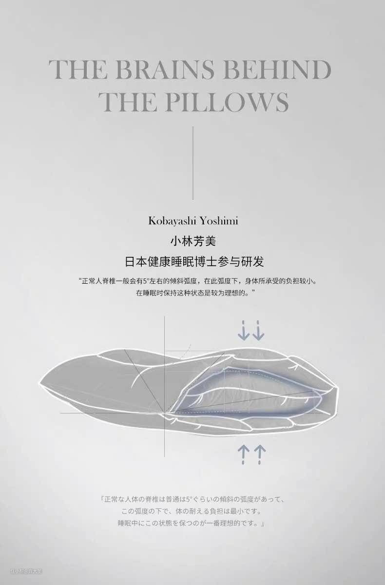 这款羽绒枕更吸引我的一点就是它独特的功能性——目前市面上 唯一的羽绒功能枕。由日本健康睡眠博士小林芳美参与研发,在保持现有高端羽绒枕的所有优势的同时又能改善颈椎,刚好符合我的需求。