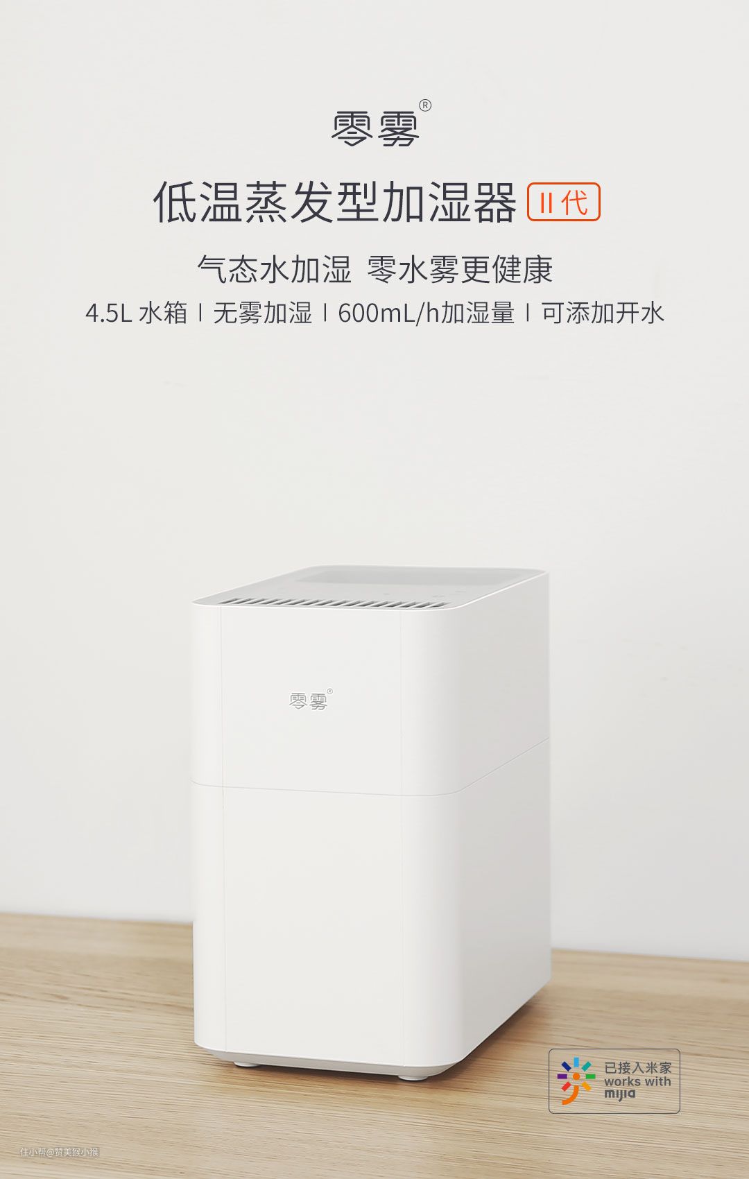 1.蒸发式加湿器的两种产品虽然从原理上都采用了加湿盘的结构,但是零雾二代由于加入了加热模块,使得尽管在尺寸上和智米纯净型加湿器体积差不多,但是加湿量提高到了600m/h。但是需要更大的加热功率。