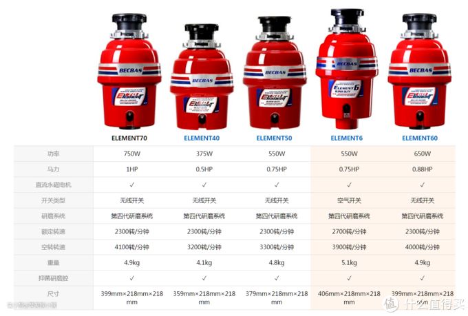 ▲对于垃圾处理器的选择需要考虑:电机类型,安装便捷度,开关控制方式以及研磨结构四个方面。目前国内市场上份额最大的品牌莫过于贝克巴斯了,贝克巴斯E系列产品大部分都采用了无线开关(E6除外),省去了打孔的烦恼。