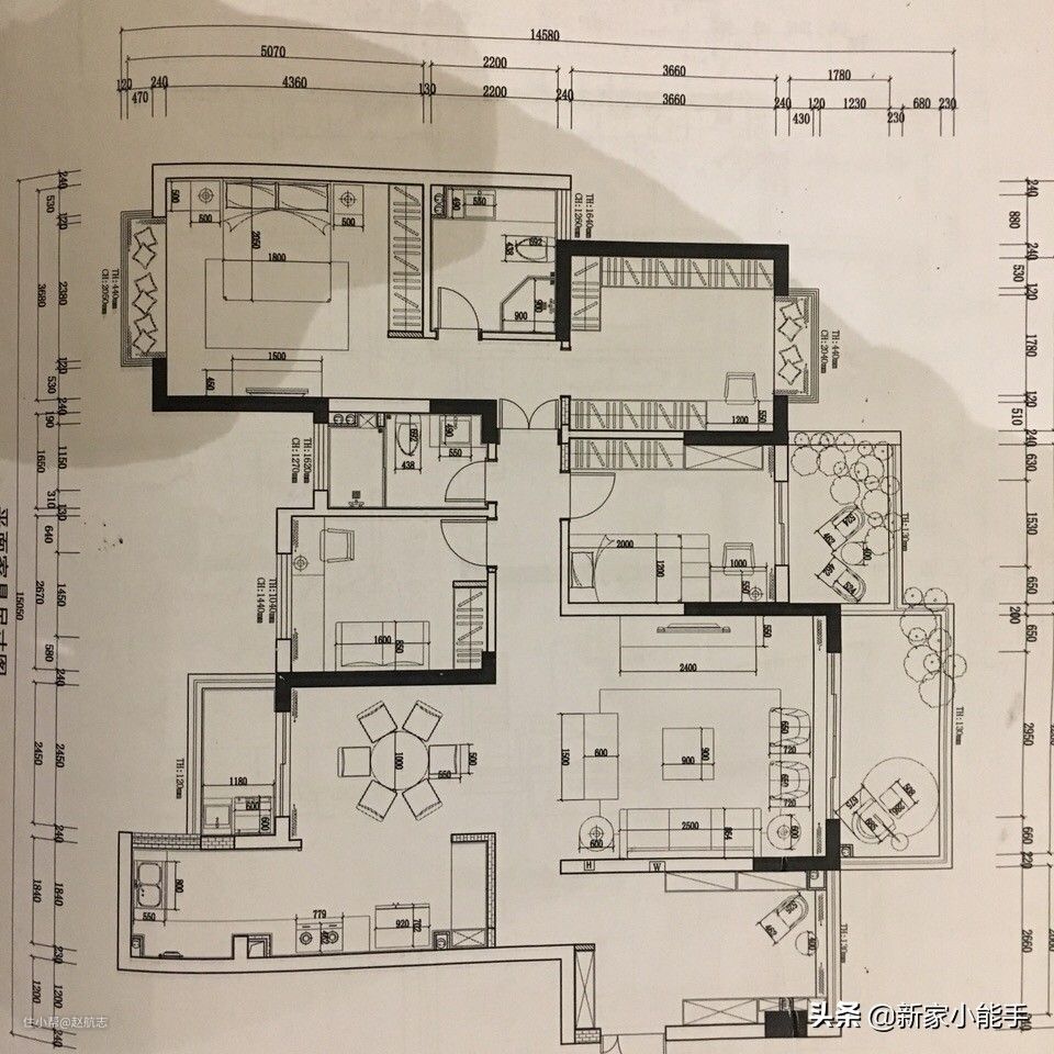 这是原始户型图,属于比较经典的四房两厅的大户型了,南北通透,室内整个空间采光都比较充足,户型方方正正还不错,很喜欢这样的房子。