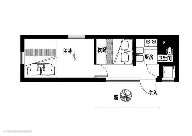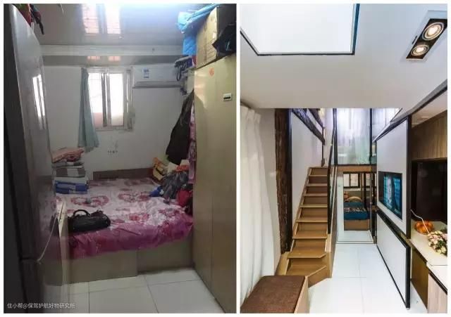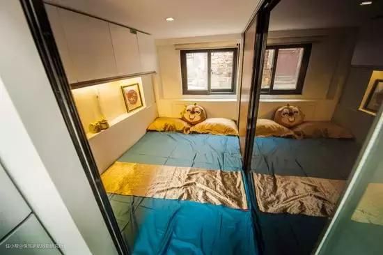 狭窄的空间里,如一张床、一张小桌、一台冰箱... 所谓客厅卧室等功能分区简直无从谈起。