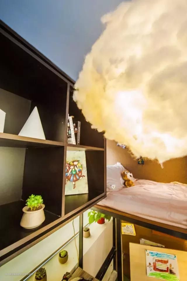 为了给凡凡一个温馨可爱儿童房,设计师还为凡凡亲自做了一朵可爱的云彩之灯。