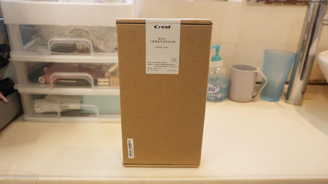 快递过来有一个牛皮纸的外盒,里面还有一个彩色的包装。最外层有佳洁士的封口,也能让用户了解在运输过程中是否被拆开。里面的彩盒有一层塑封薄膜,在盒子外面是产品的一些介绍说明。整体的包装应该说做的比较细,而且整体风格也都是卡通设计,封面的卡通动物是一个兔子造型,而儿子也刚好属兔,拿到后特别的开心。