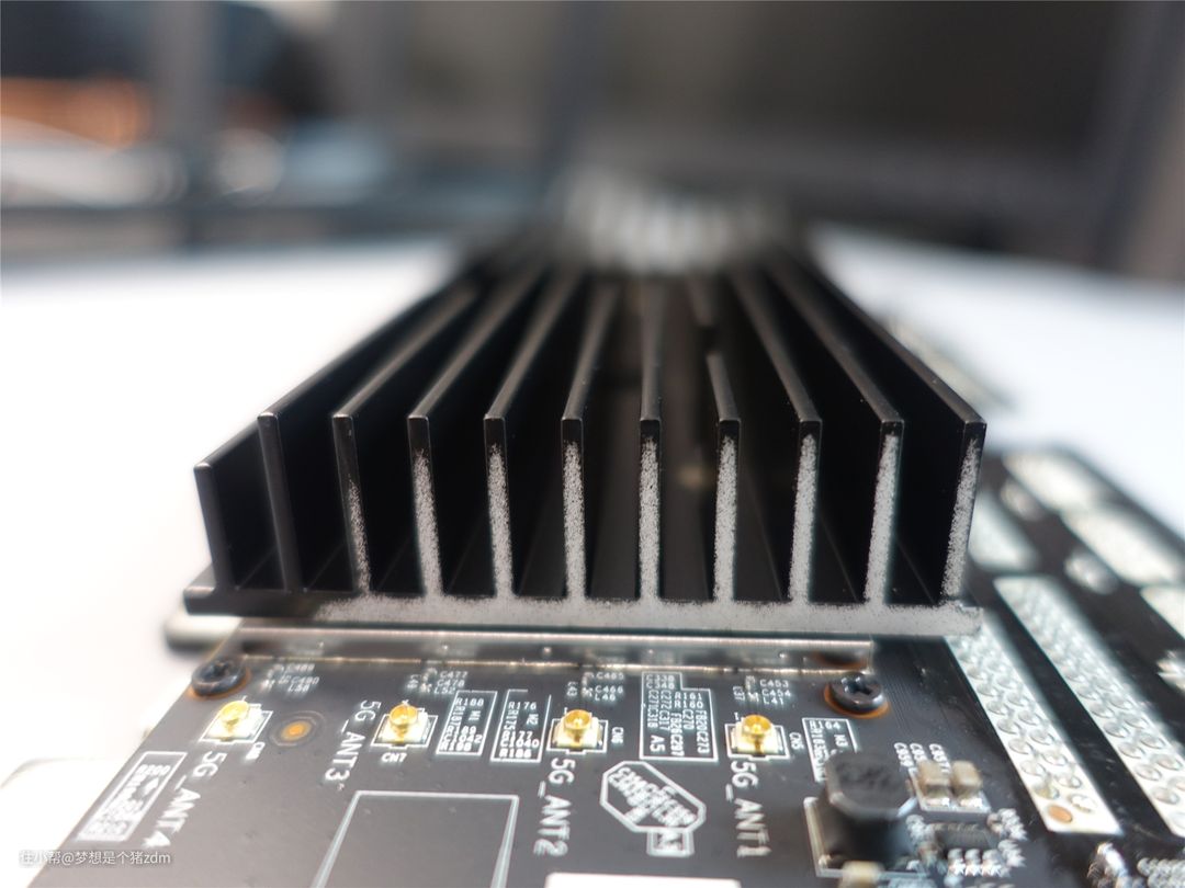 正面的散热片非常厚实,主要是覆盖了重要的芯片部位。