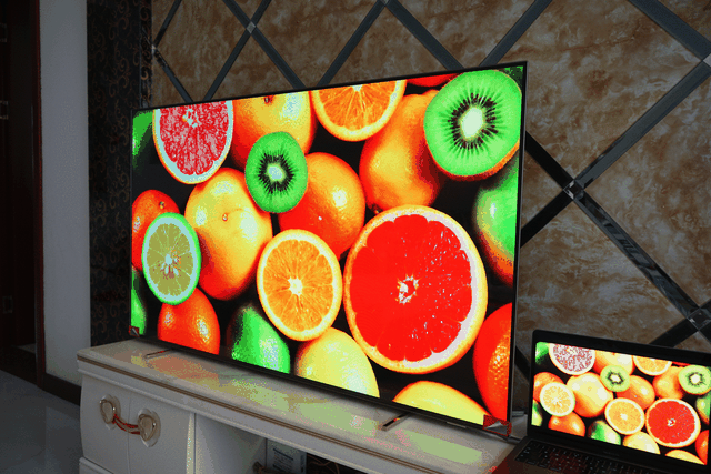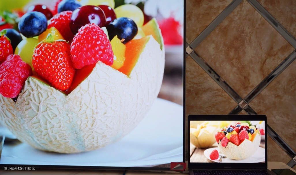 从实际视觉效果来看,飞利浦55OLED784/T3智能电视机的色彩显示效果一点不输苹果的MacBook Pro的Retina屏幕,而整体亮度上,飞利浦55OLED784/T3智能电视机也更高。下面是不同角度下观看的动态演示,几乎看不到观看角度变化带来的色差和亮度差异。