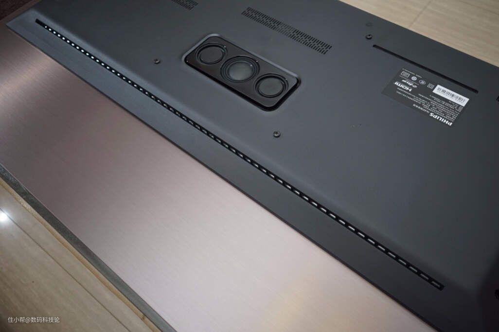 导引孔主要集中在电视的上侧,这使得其声场的覆盖范围变得更宽,并且双声道立体声的效果很好。