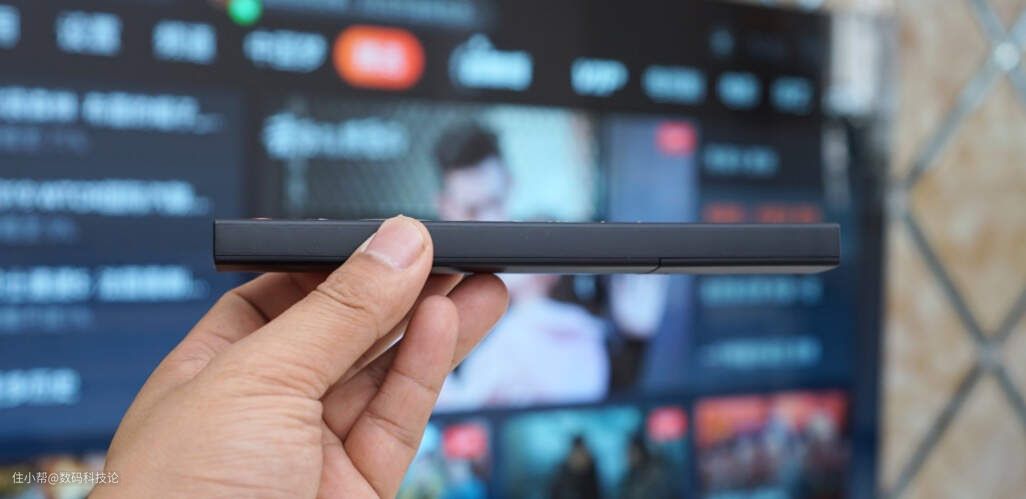 口香糖式的遥控器,单排按键设计,非常简约大方,并且支持语音控制。