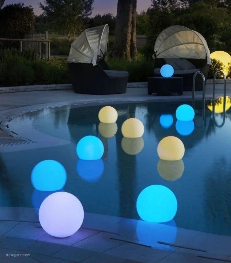 除了日式庭院的各种灯具,其他风格的庭院也需要兼具实用和美貌的灯具。下面的这种球形灯就适合多种风格的庭院照明。