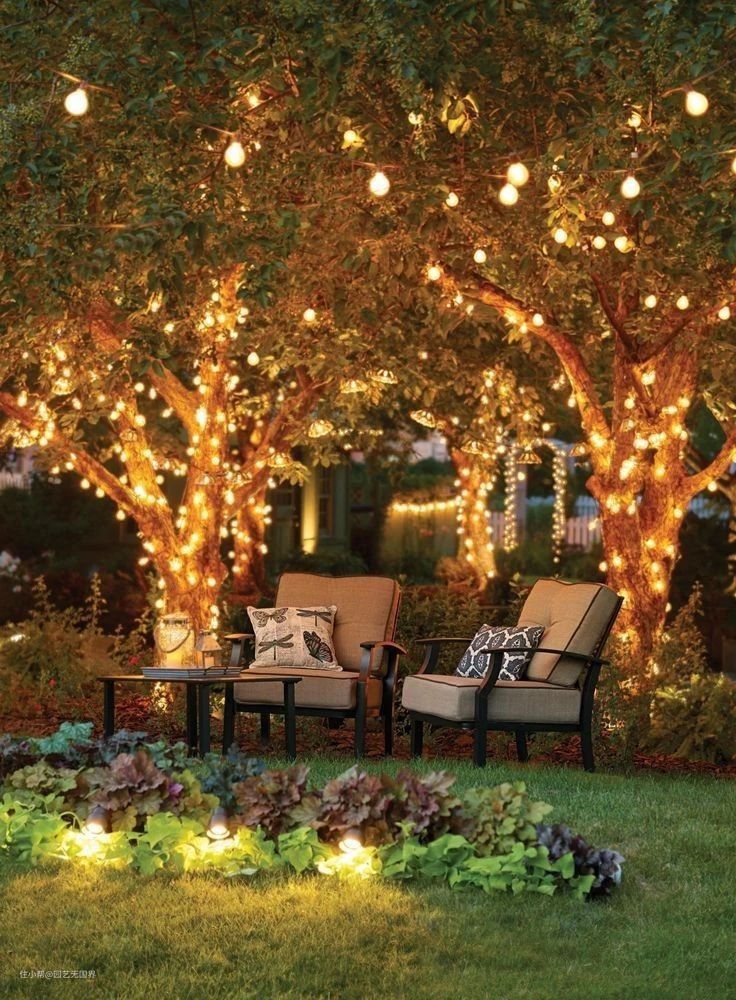如果庭院里栽有高大树木的话,也可适当缠绕灯串照明,仿若童话仙境再现,暖意十足。