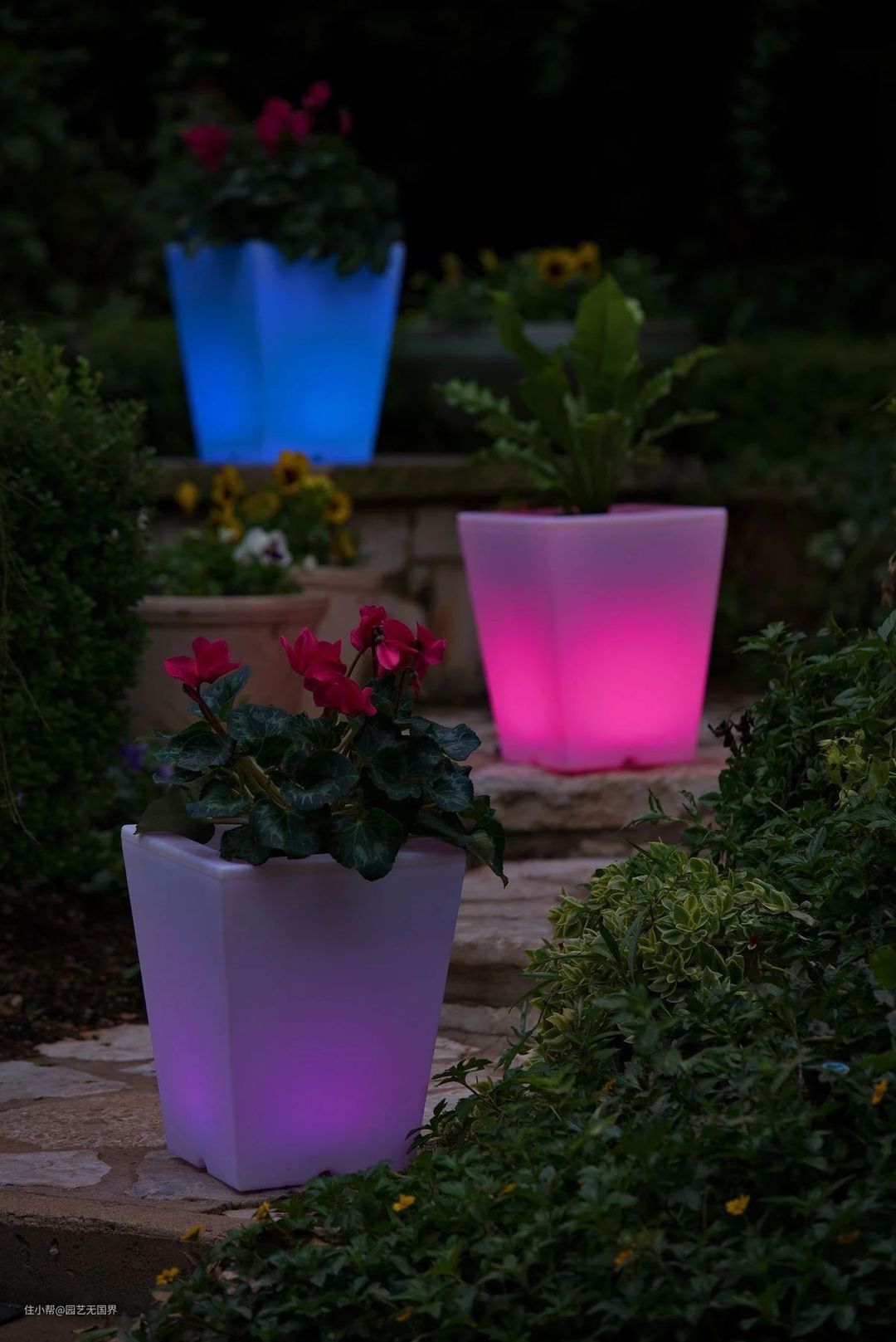 这种发光花盆的发展可谓登峰造极,不仅有发白光的,还有红橙黄绿青蓝紫……